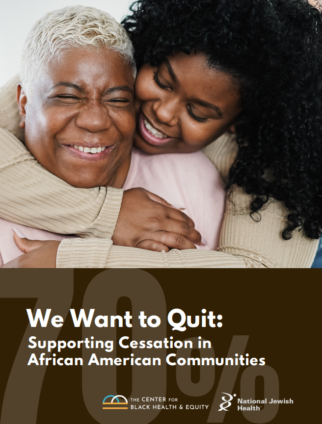 Recently the Center for Black Health & Equity and National Jewish Health released the, “We Want to Quit: Supporting Cessation in African American Communities” toolkit, also known as the 70% Guide. The 70% guides cessation treatment programs while also considering social determinants of health. It also challenges the overtly racist rhetoric that tobacco companies have promoted for decades.
